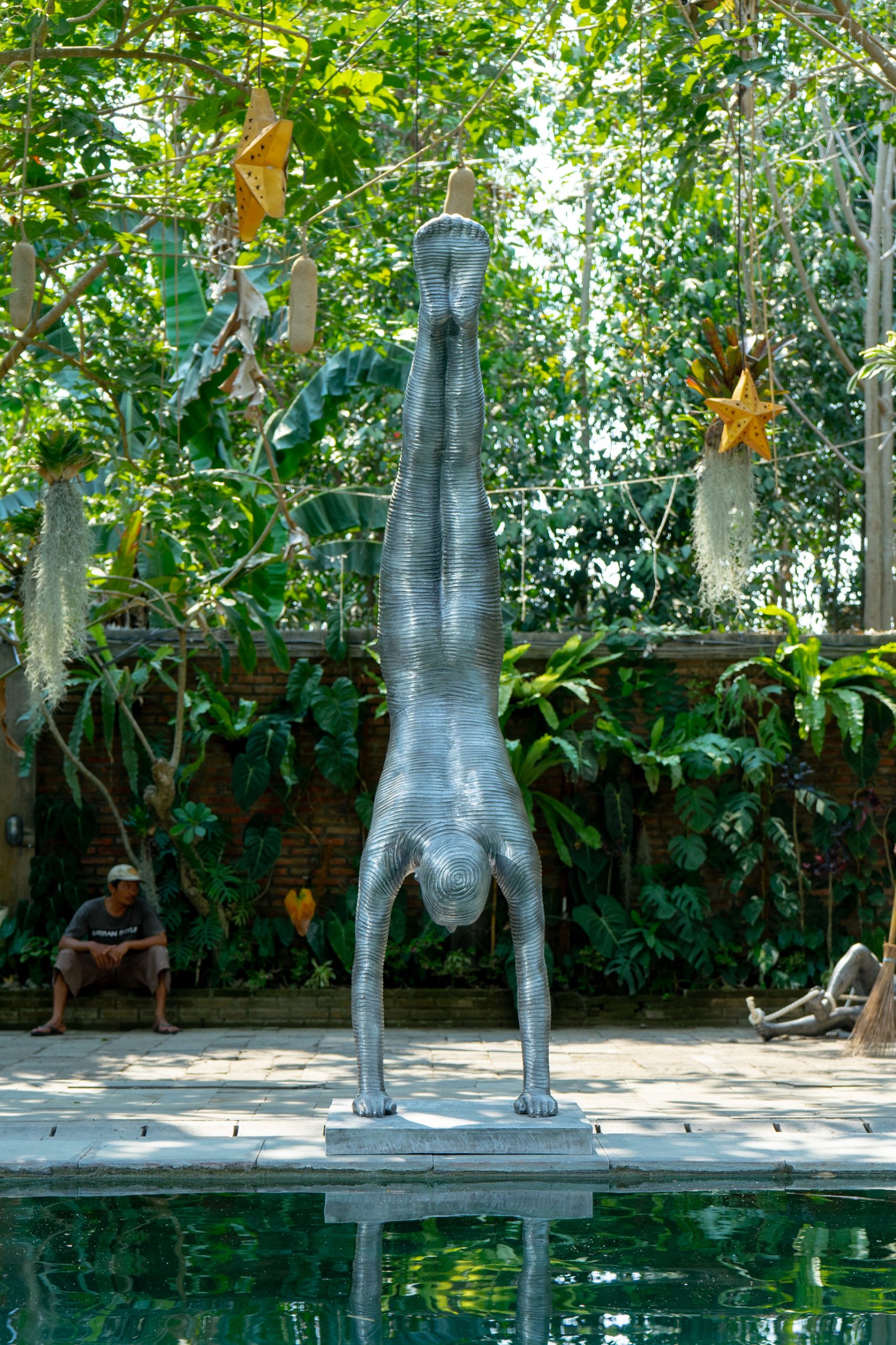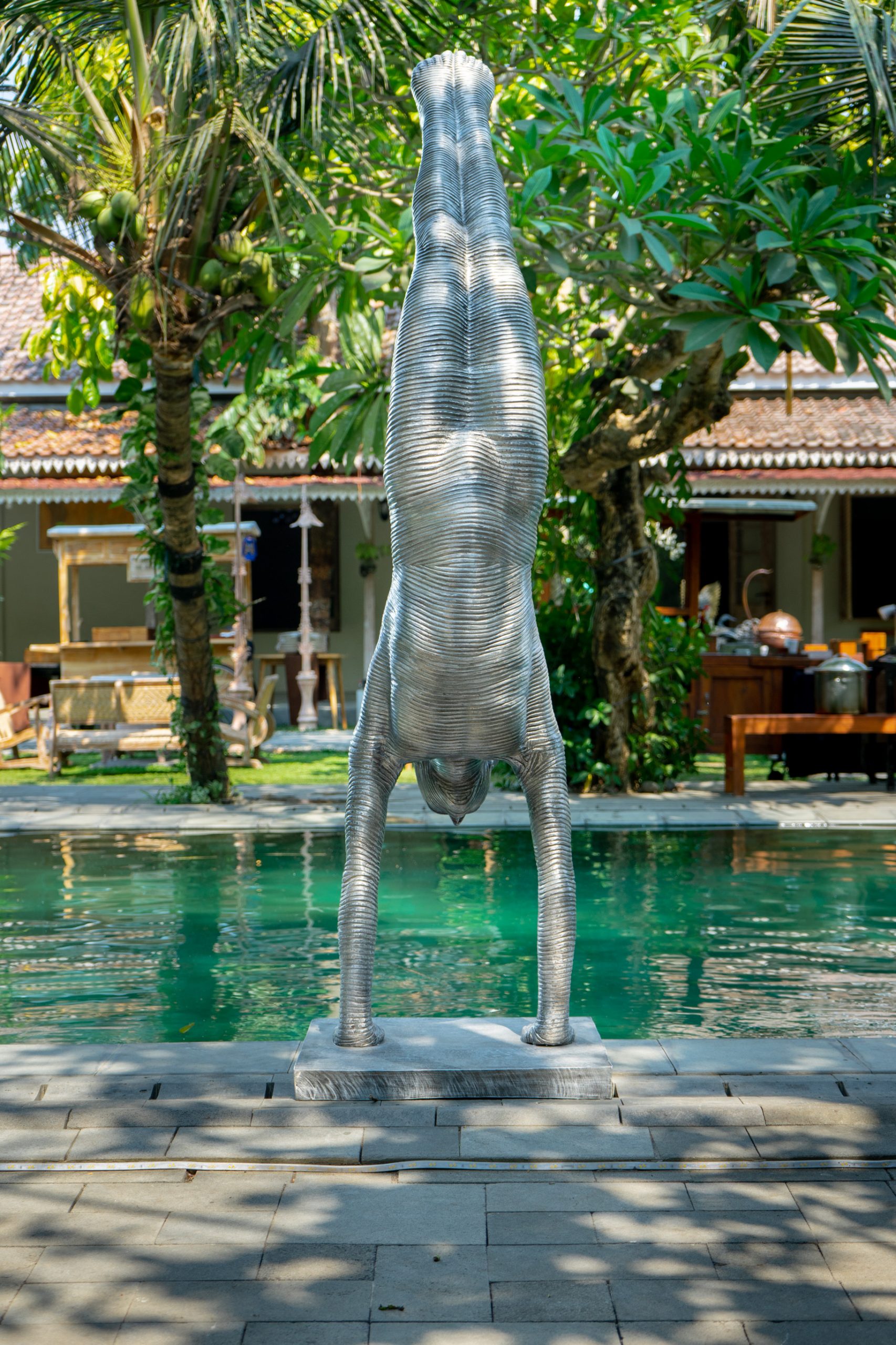 This pose symbolizes challenge and overcoming obstacles, as achieving a handstand requires dedication and overcoming limitations. Additionally, aluminum can represent the determination and willpower needed to surpass boundaries.