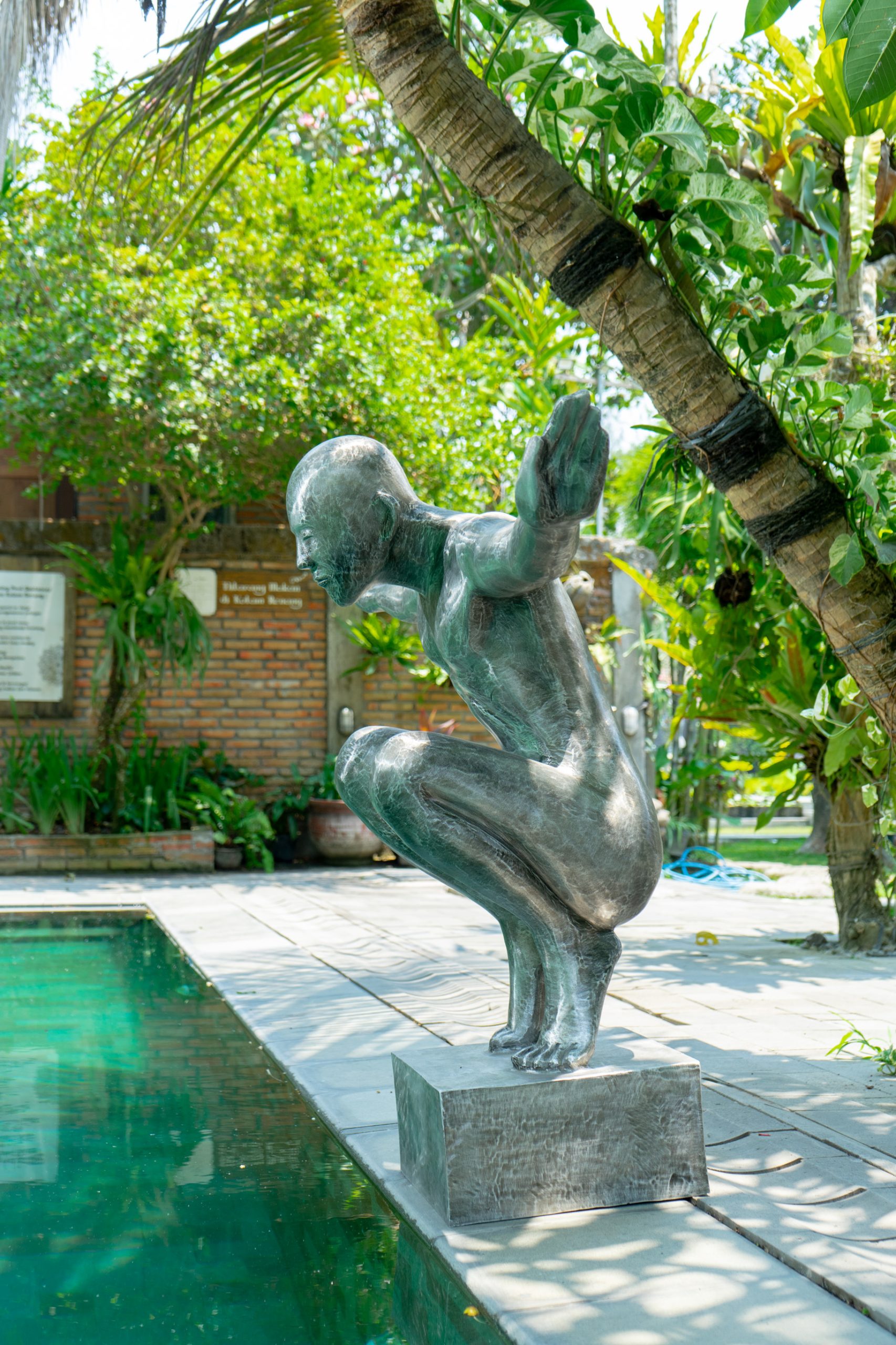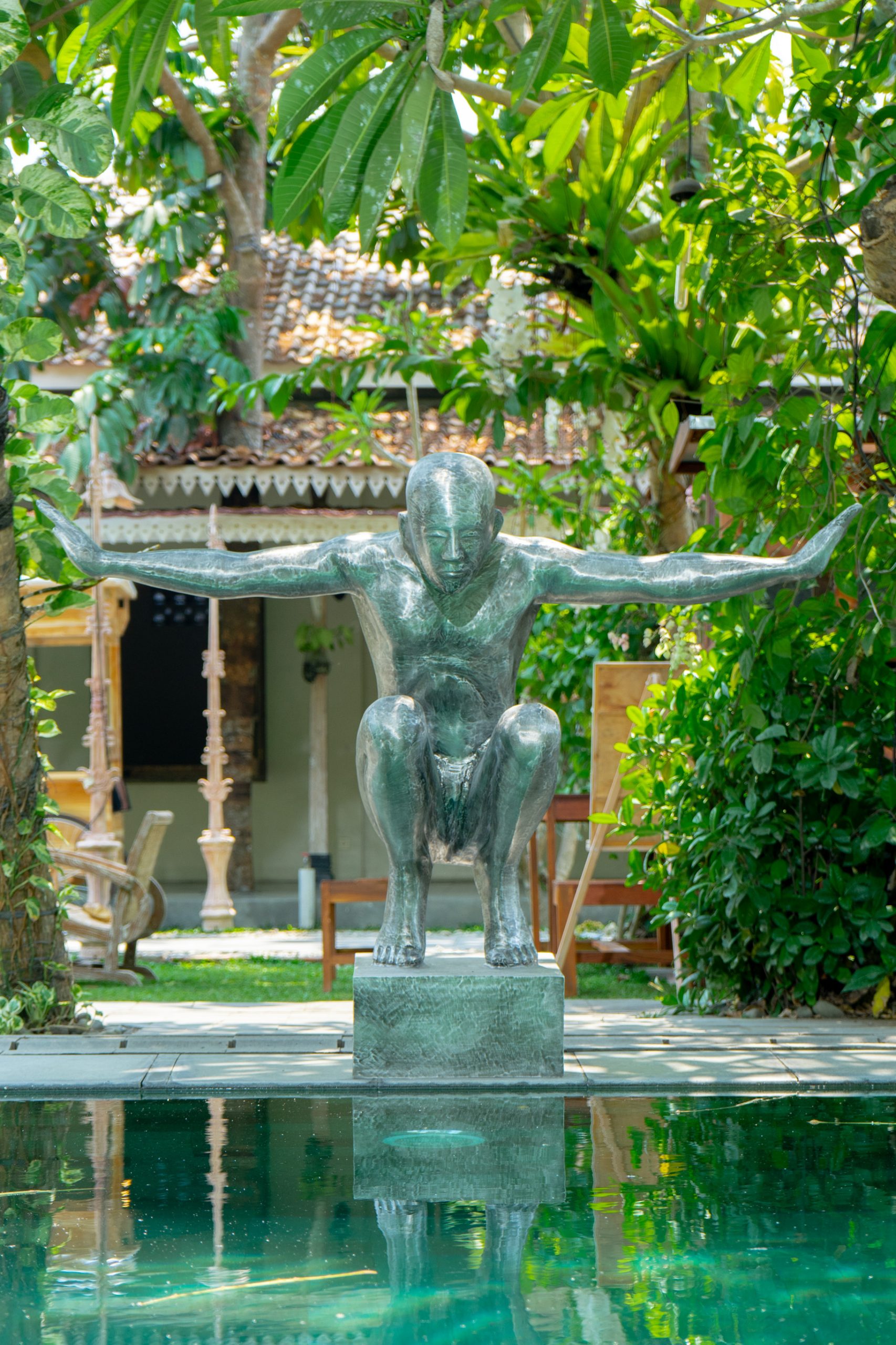 We interpret this pose as a symbolic representation of stability and foundation, resonating with the association of squatting as a grounding element, both physically and mentally.